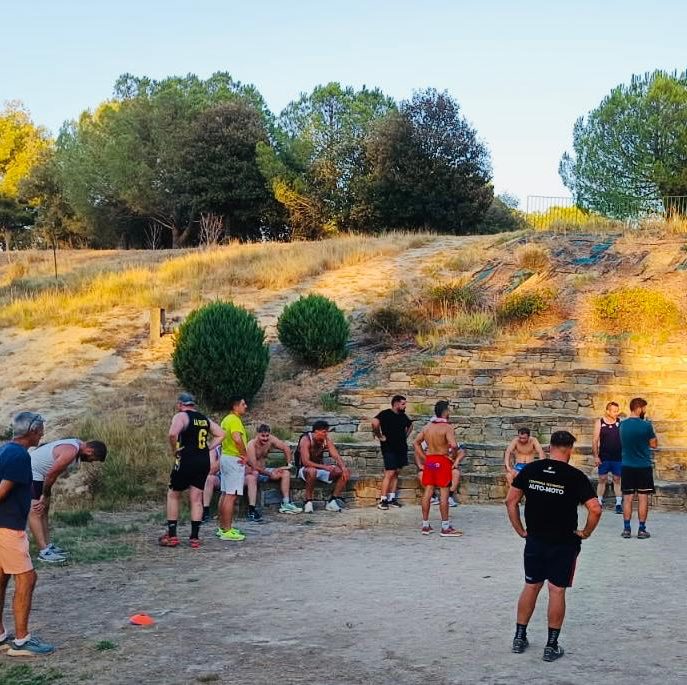L'heure n'est pas à la rigolade ces derniers jours. après la joie de se retrouver, la douleur de récupérer le physique d'athlète oublié sur les plages méditerranéennes. Le préparateur physique a concocté un petit programme en pleine nature ombragée ; permettant de supporter dans l'effort, les chaleurs occitanes.